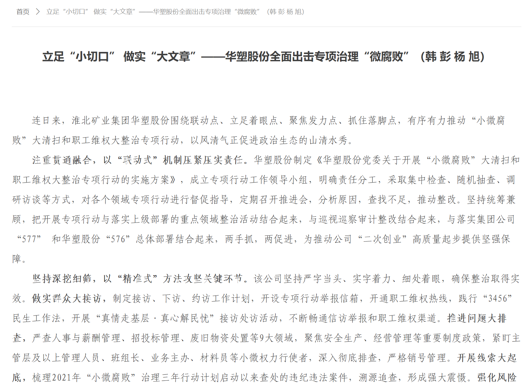 《安徽煤炭网》4月1日:立足“小切口” 做实“大文章”——yd2333云顶电子游戏股份全面出击专项治理“微腐败”