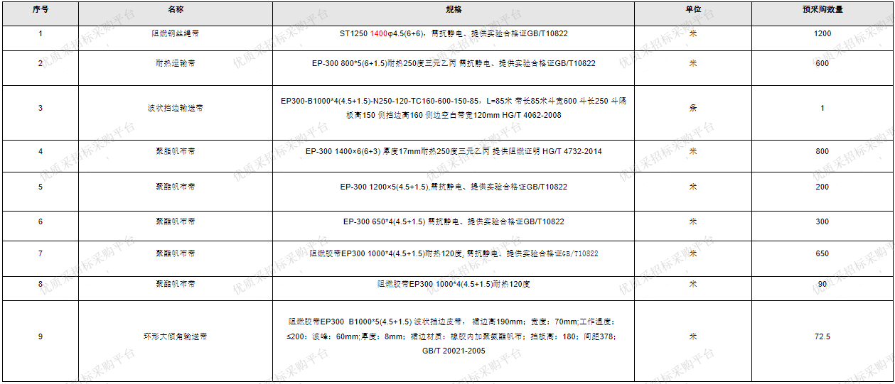 2.2 招标范围:安徽yd2333云顶电子游戏股份有限公司拟通过公开招标方式,选择一家生产厂家负责输送带采购供应工作,输送带采购清单及参数如下: